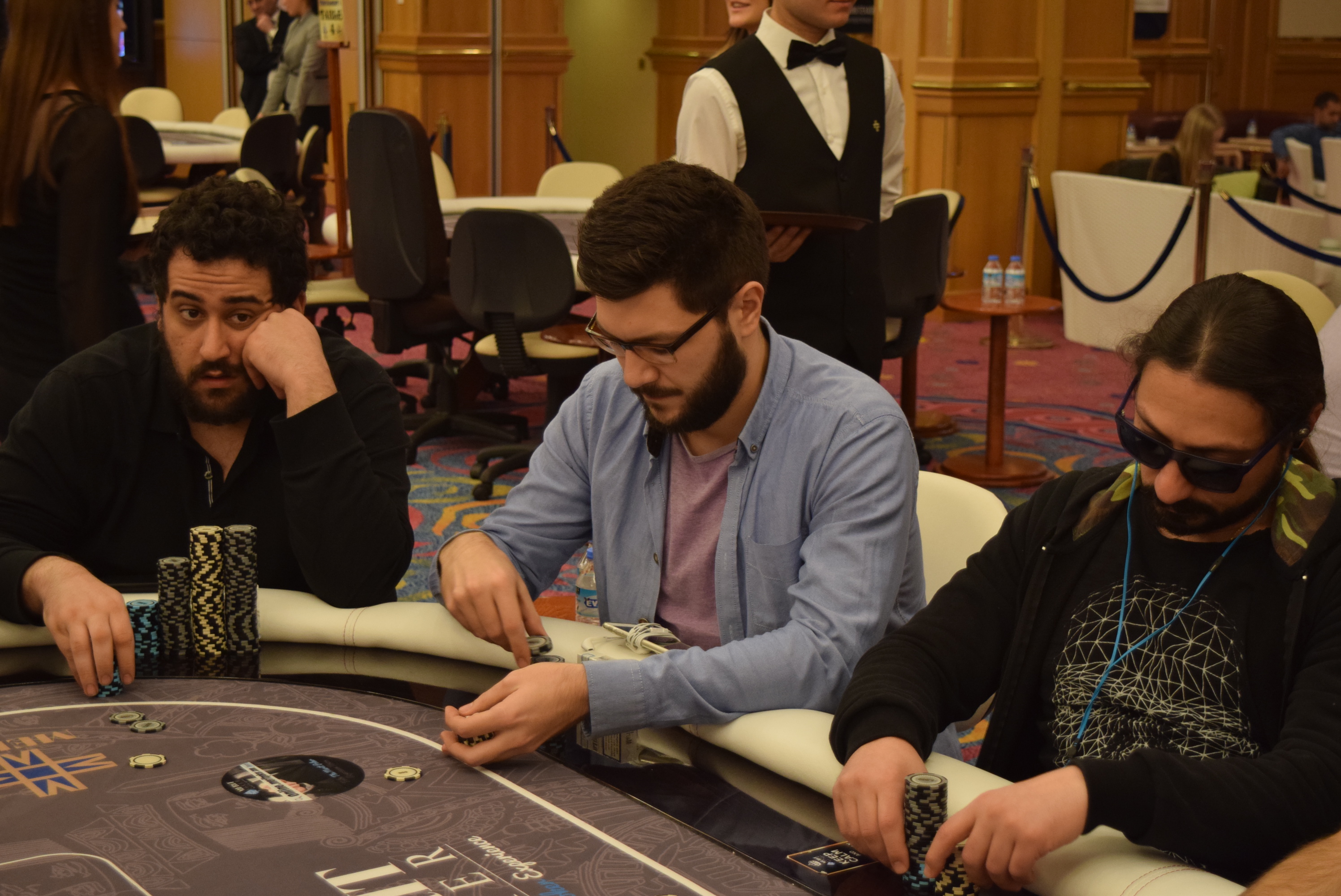 Τη στιγμή που γράφαμε για τον αποκλεισμό του Ευαγόρου ακούσαμε την dealer απ’ το τραπέζι στο οποίο κάθονται οι δύο Έλληνες ν’ ανακοινώνει το all-in και… σπεύσαμε για ν’ απαθανατίσουμε την στιγμή με τον φακό μας.