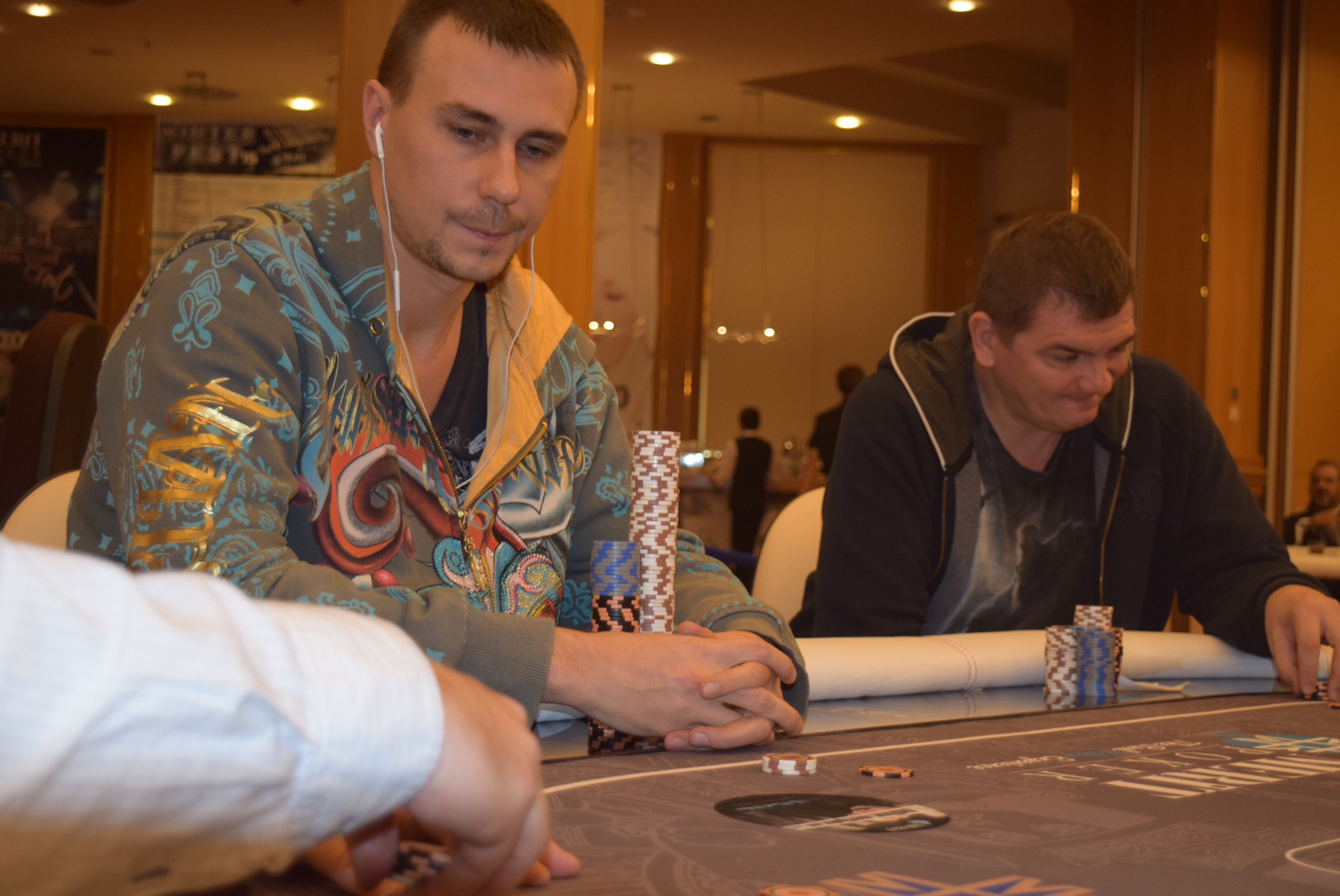 στο flop. Bet του Gromov στις 10.000, call του τρίτου παίκτη, raise του Χαλκιαδάκη στις 40.000, πάσο ο Ρώσος, call-shove ο αντίπαλος του.