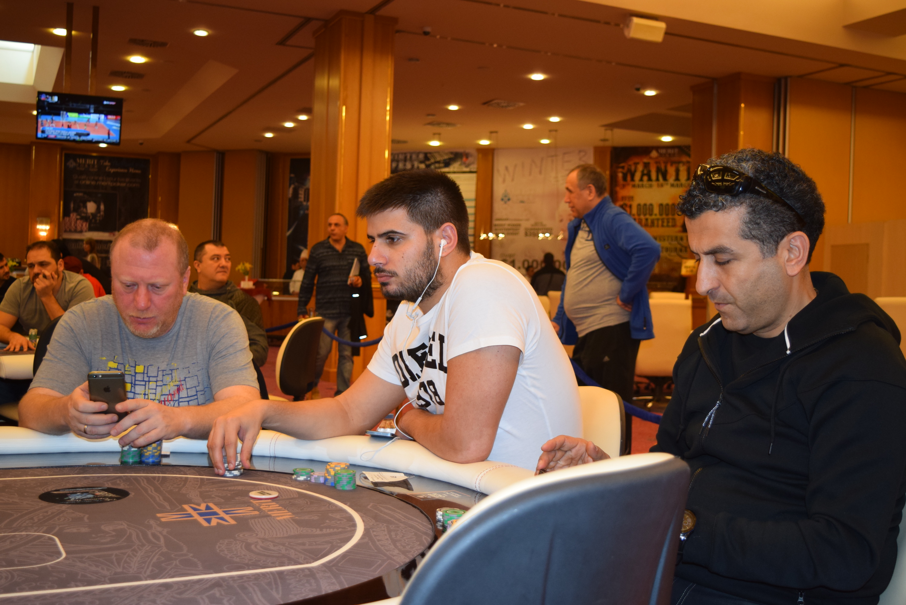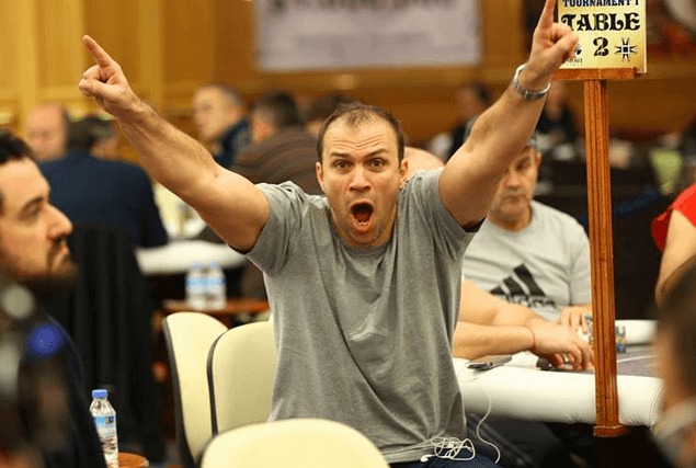 Μόλις απέκλεισε ο ‘Tony Montana’ ακόμη έναν αντίπαλο του ο οποίος έπαιξε τα ρέστα του (περίπου 4.000 chips) με ζεύγος δυάρια. Τριάρια ο Περτσινίδης, κράτησαν με το άνοιγμα του board όπως βλέπετε και στην σχετική φωτογραφία.