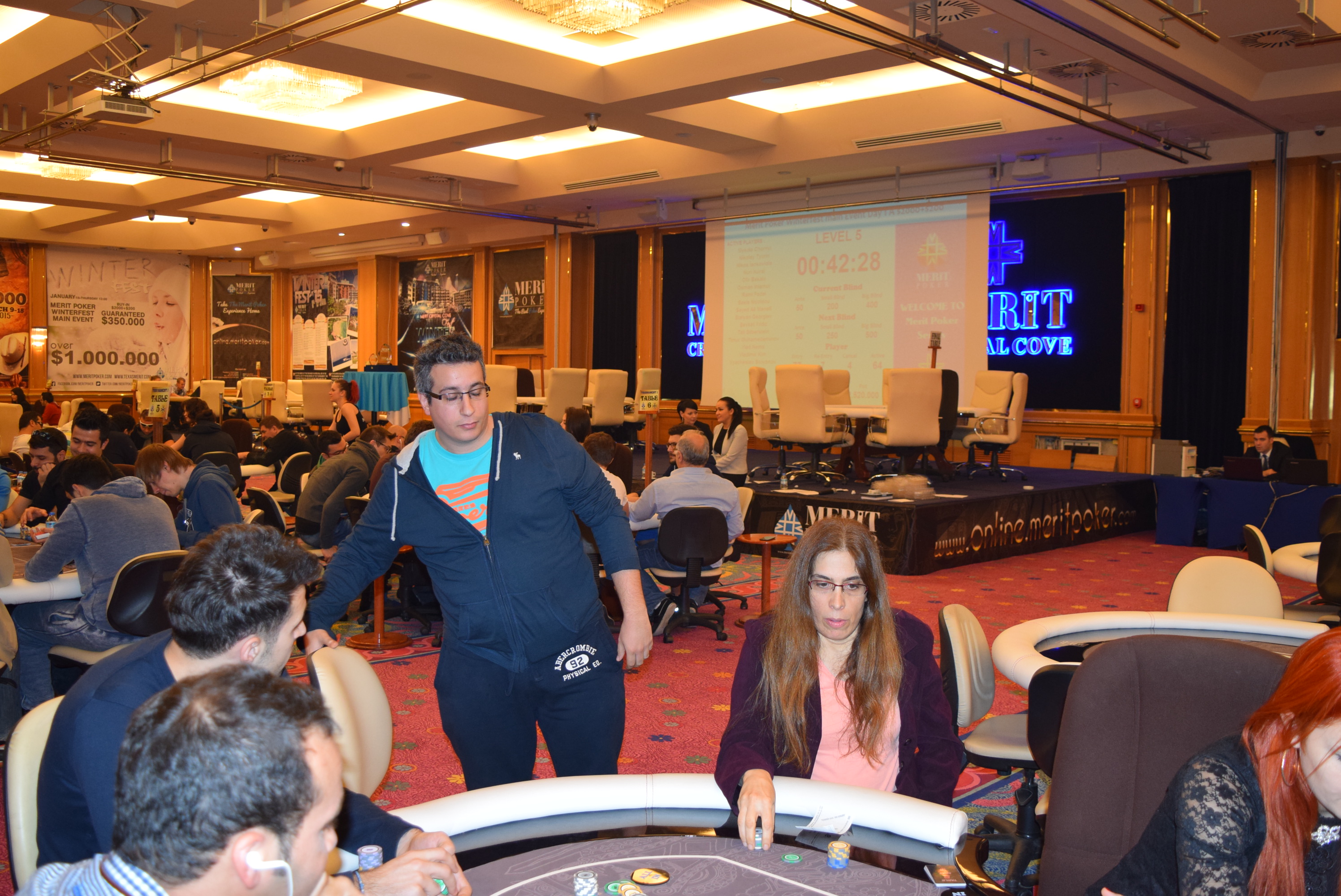 Level 6 πλέον, 250/500, ante 50 τα blinds, 57 από τους 77 συνεχίζουν.