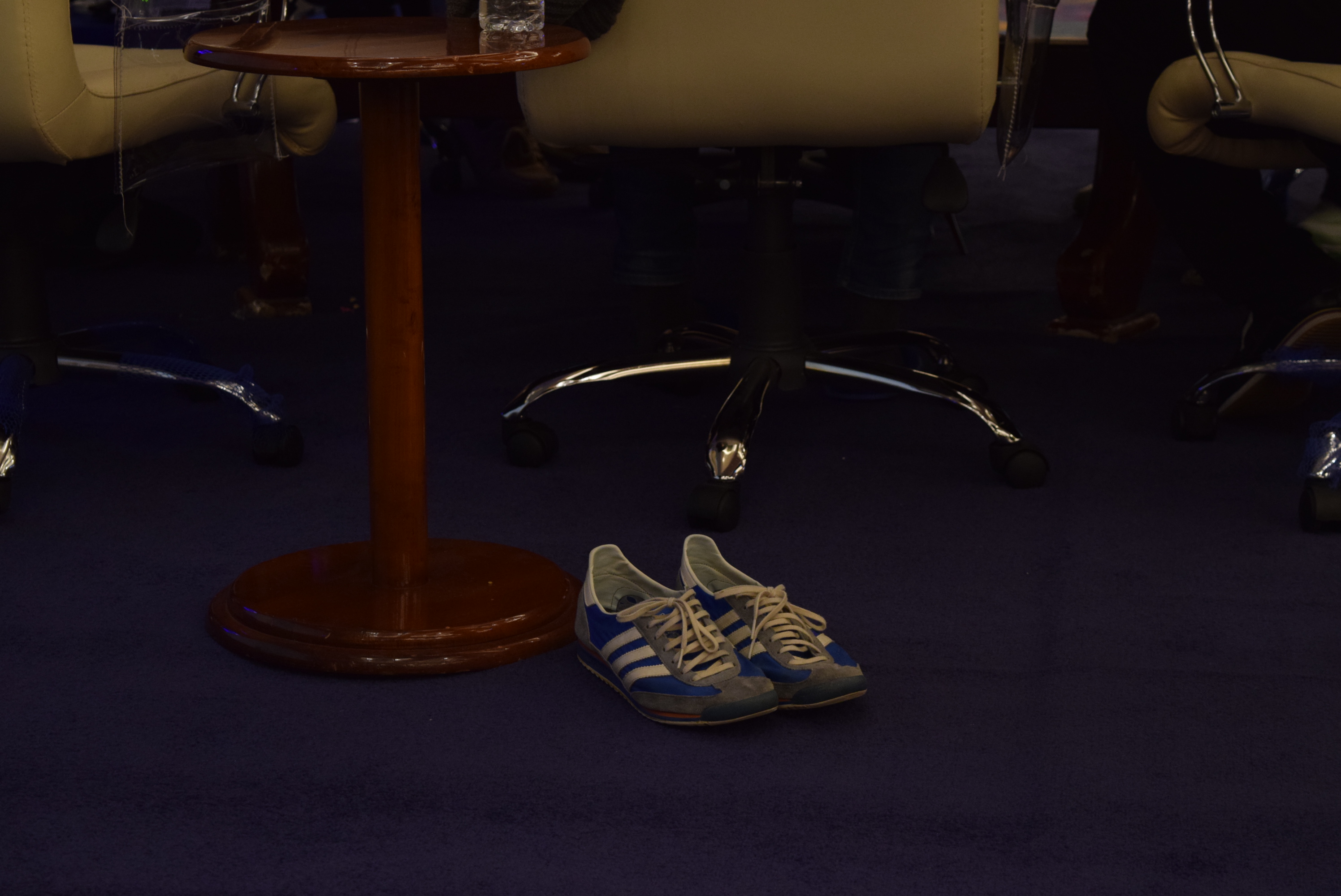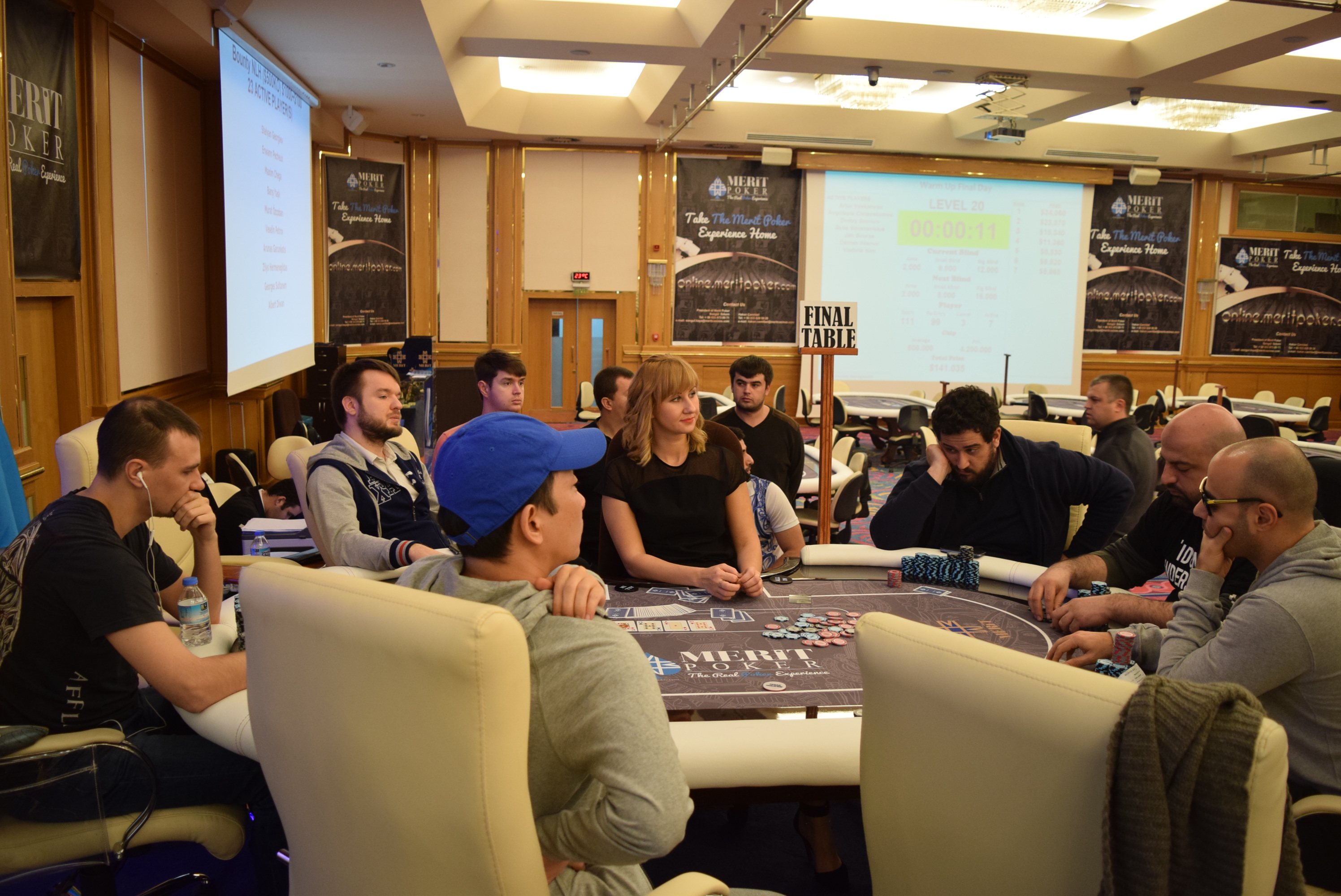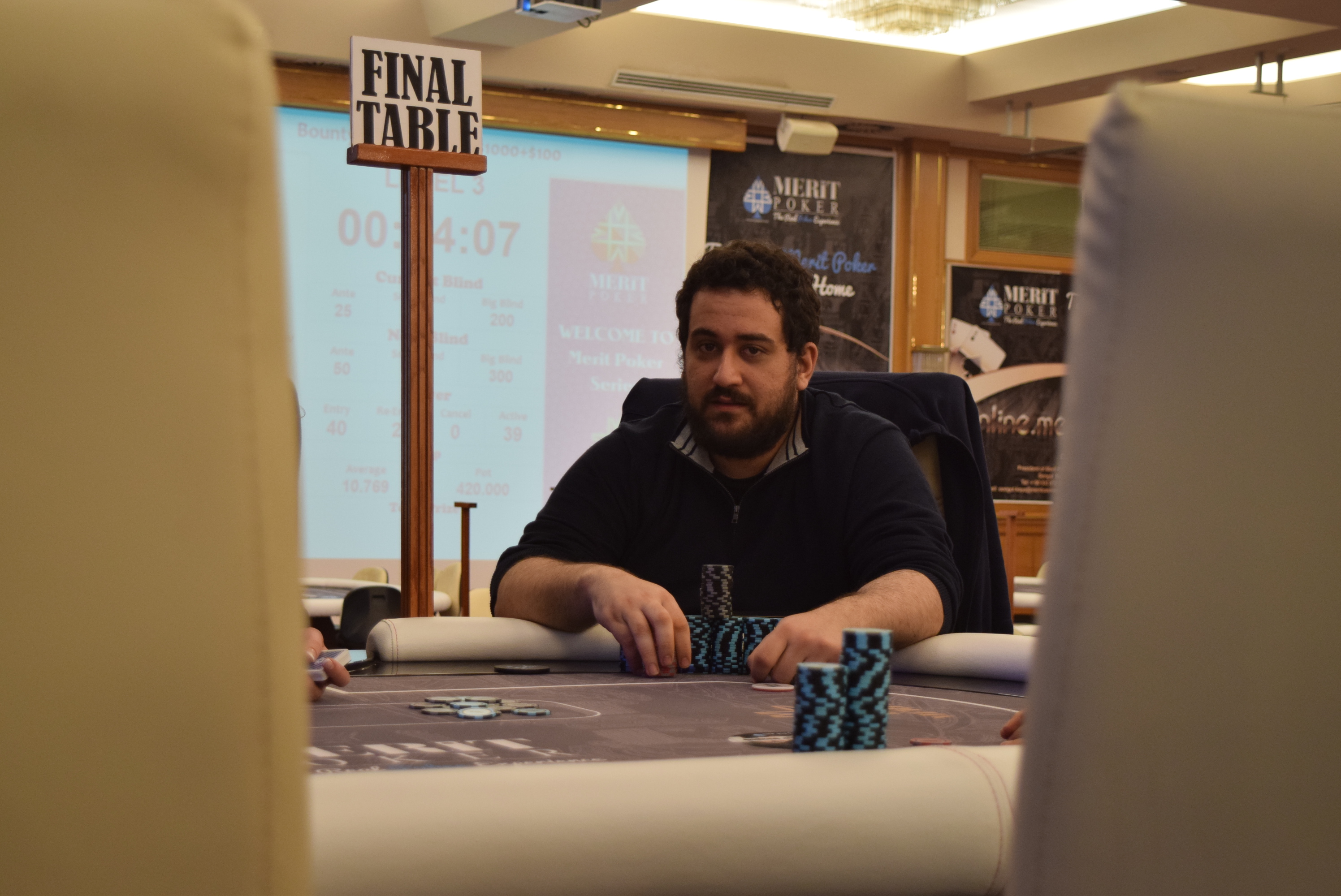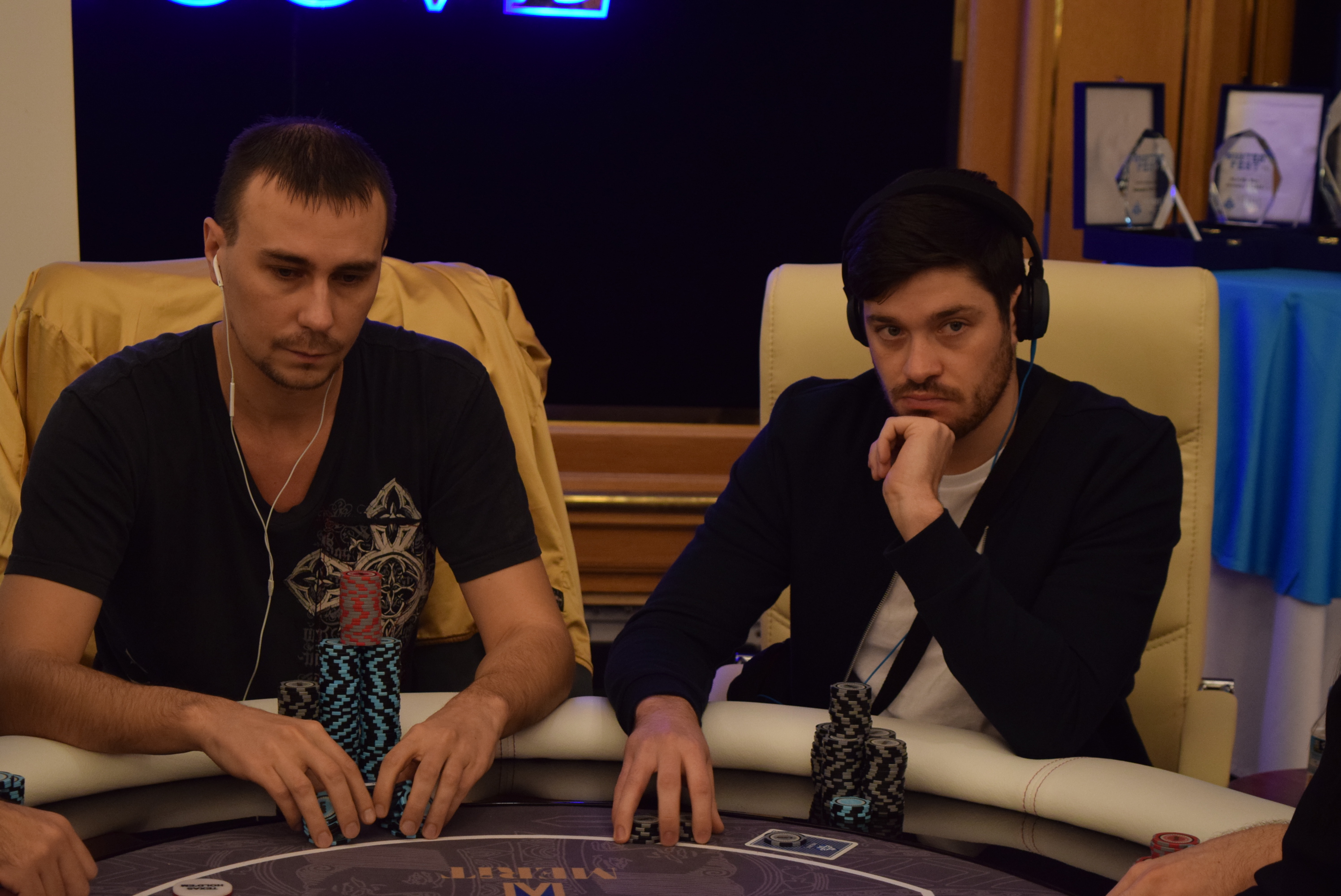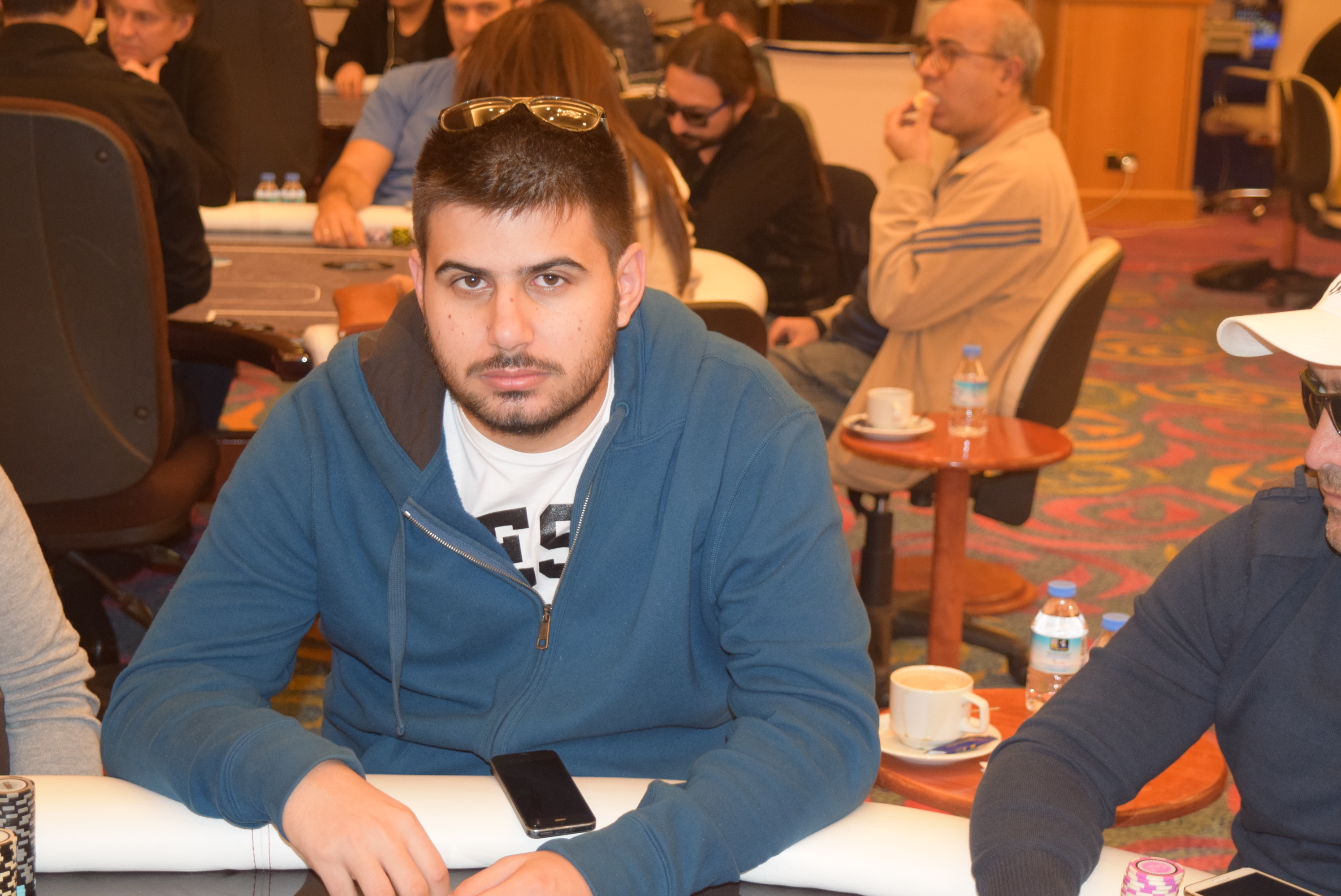Check του Λιθουανού και του Χρυσοστόμου, bet στις 80.000 του Gromov, fold του sb, raise του Χρυσοστόμου στις 170.000, shove του Ρώσου με Α-3, call αμέσως ο Κύπριος με άσους!