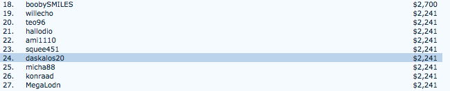 Στο ίδιο τουρνουά συμμετείχε και ο Θοδωρής "teo96" Αηδονόπουλος ο οποίος αποκλείστηκε στην 20η θέση κερδίζοντας επίσης $2.241.