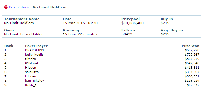 Περισσότεροι από 50.000 παίκτες έλαβαν μέρος στο κυριακάτικο τουρνουά του PokerStars, με τους 7 φιναλίστ να πραγματοποιούν deal και τον Έλληνα παίκτη να λαμβάνει το μεγαλύτερο ποσό όντας chip leader εκείνη τη στιγμή!