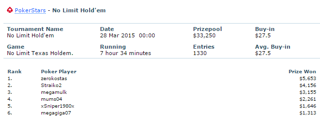 ZEROKOSTAS PokerStars results. ZEROKOSTAS poker ratings  statistics