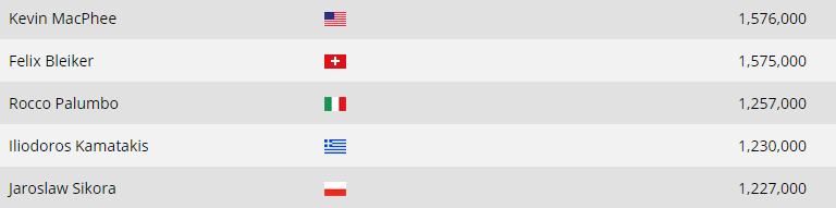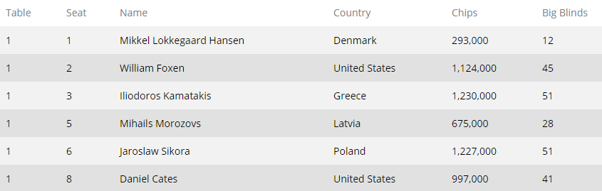 Chip leader των 18 φιναλίστ είναι ο Kevin MacPhee με 1.576.000 chips και ακολουθεί με μόλις χίλιες μάρκες λιγότερες ο Felix Bleiker.