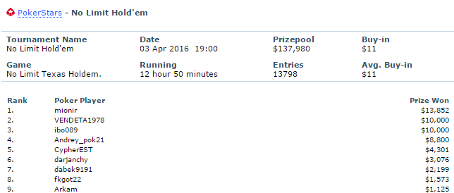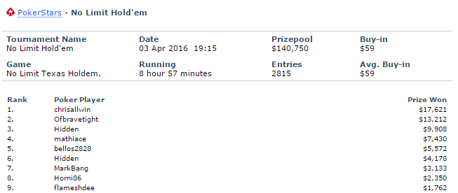 Το τουρνουά συγκέντρωσε ένα field 6.271 παικτών και ολοκληρώθηκε λίγο πριν τις 10:00 ώρα Ελλάδος!