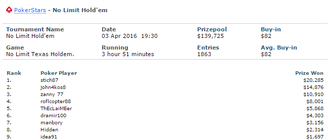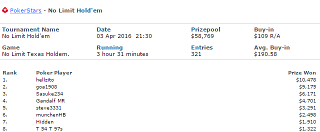 Ο Νίκος ‘goa1908’ Καλαϊτζίδης εξάλλου εισέπραξε $9.175 με την 2η θέση σ’ ένα $109 R/A NLHE.