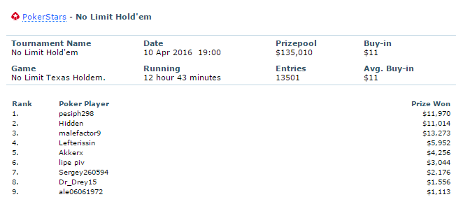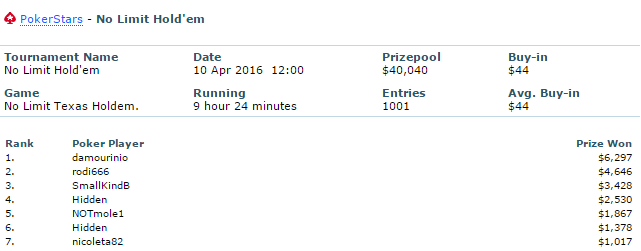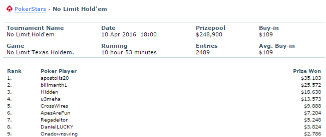 Την ίδια μέρα ο ‘apostolis20’ τερμάτισε και στην 47η θέση στο $215 Sunday Million για ακόμη $2.074.