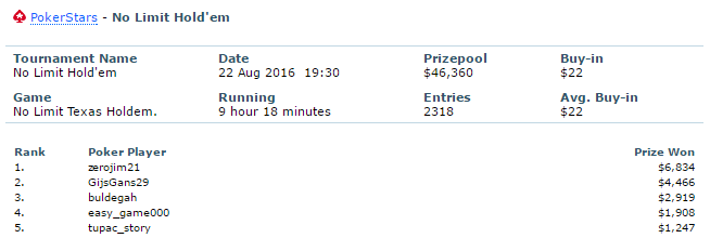 Πρωτιά και για τον ‘zerojim21’ που ‘σήκωσε’ το $22 Mini Monday 6-max για $6.834.