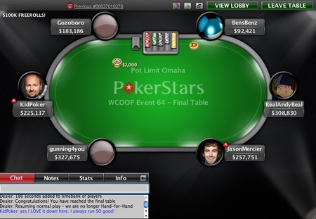 Ο Negreanu, ο οποίος δεν έχει κατορθώσει να γράψει, μέχρι στιγμής, το όνομά του στη λίστα των χρυσών νικητών του WCOOP, έφτασε μέχρι την 3-handed action. Αν και, εκείνη τη στιγμή, είχε το προβάδισμα, το έχασε μέσα σε μόλις 10 λεπτά παίζοντας Limit Hold’em. Ο αποκλεισμός του σήμανε την έναρξη του heads-up μεταξύ του Mercier και του Ιρλανδού Gozoboro.