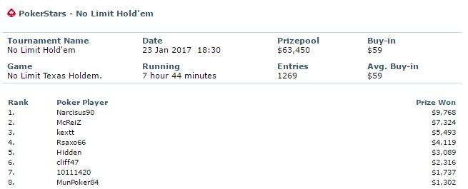 Δύο αξιοσημείωτες επιδόσεις και για τον ‘McReiZ’ που κατέλαβε την 2η θέση στο $109 Bounty Builder για $7.324 (+$2.528 από bounties) και την 2η θέση στο $109 Monday 6-max για $3.686!