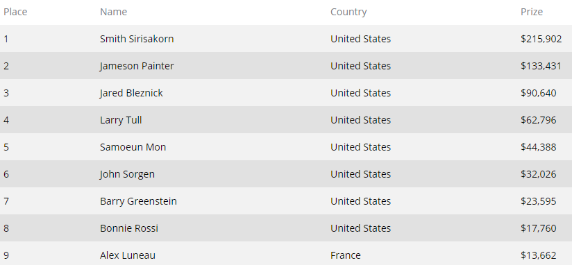 Το πρώτο βραχιόλι της καριέρας του κατέκτησε ο Smith Sirisakorn που δηλώνει αρχάριος στα τουρνουά κι επαγγελματίας στα cash games.