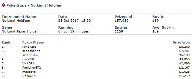 Στην 3η θέση του $109 Bounty Builder τερμάτισε ο ‘seferidias2’ κερδίζοντας $5.139 και επιπλέον $1.445 από bounties.