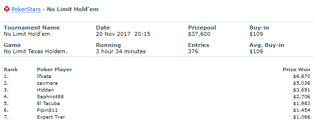 Στο heads-up του Hot $109 ηττήθηκε ο ‘zaxmara’ κερδίζοντας $5.036. Μια θέση νωρίτερα αποκλείστηκε ο ‘karas1926’ για $3.691.