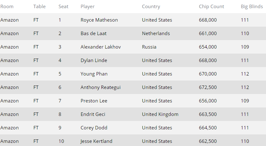 Στο τουρνουά συνεχίζουν δέκα παίκτες με chip leader τον Αμερικάνο Anthony Reategui.