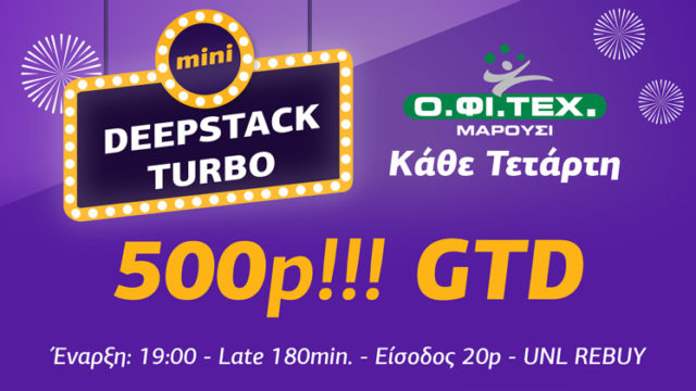 Στις 19:00 το Mini Deepstack Turbo (500p gtd)