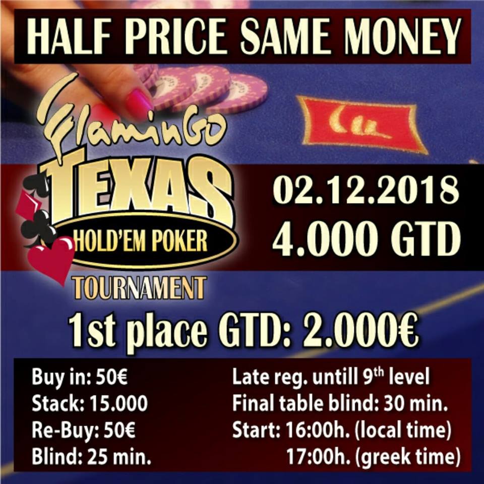 Την δυνατότητα να ‘χτυπήσετε’ ένα τετραψήφιο χρηματικό έπαθλο με μόλις 50 ευρώ σας δίνει το Flamingo poker room, καθώς το τουρνουά της αποψινής μέρας αναμένεται να γίνει sold out!