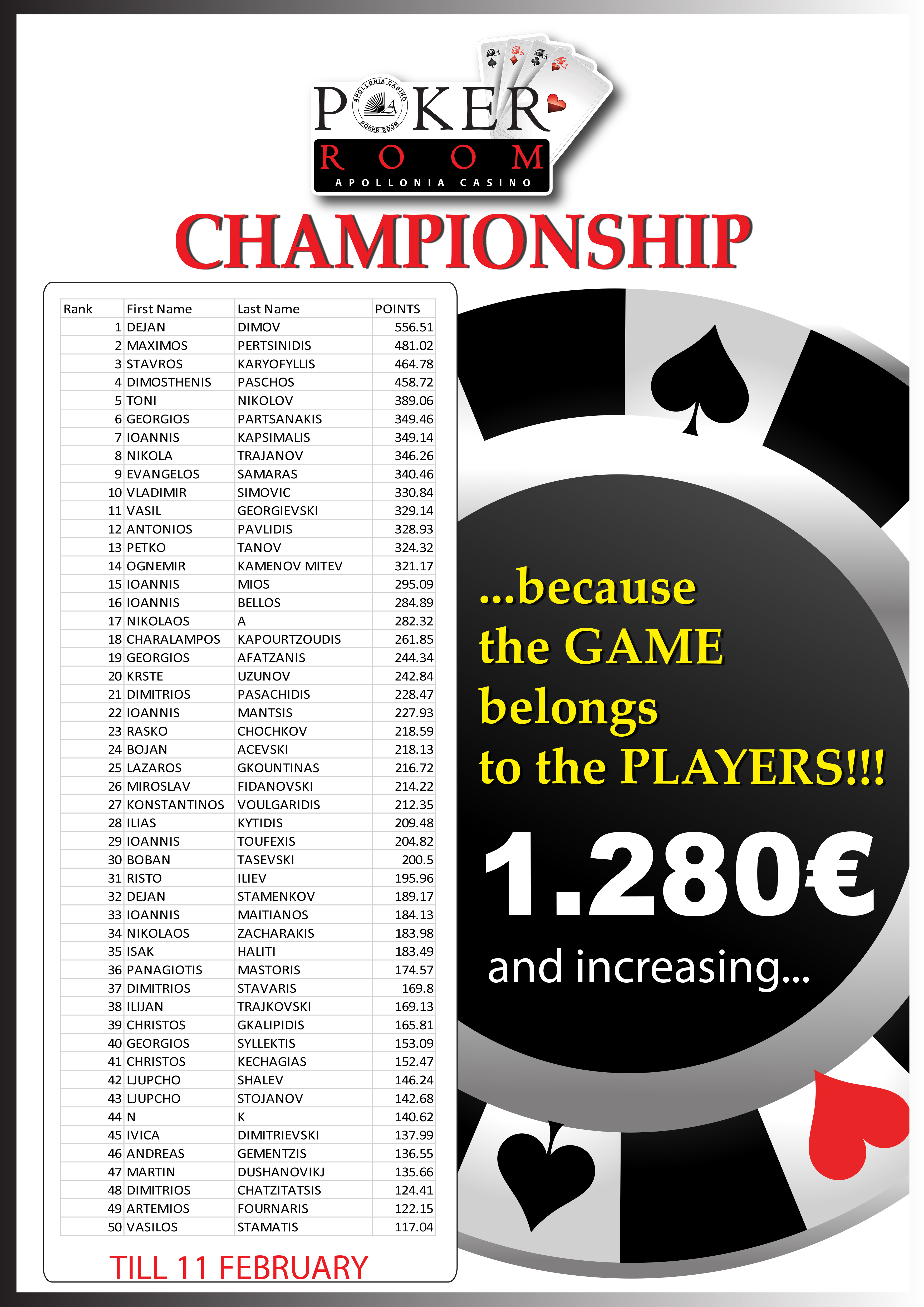 Οι Dejan Dimov και Μάξιμος Περτσινίδης εξάλλου είναι αυτοί που προπορεύονται στο leaderboard των τουρνουά!