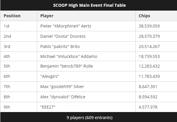Το εννιαθέσιο final table περιλαμβάνει τον ‘bencb789’ (που περιστασιακά κάνει online streams) και δημοφιλείς επαγγελματίες όπως οι Max Silver, Michael Addamo και Daniel Dvoress.