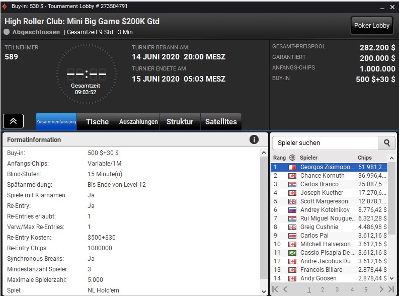 Το $530 Mini Big Game προσέλκυσε ένα field 589 συμμετοχών και ο Έλληνας παίκτης έφτασε αντιμέτωπος στο heads-up με τον γνωστό pro Chance Kornuth.