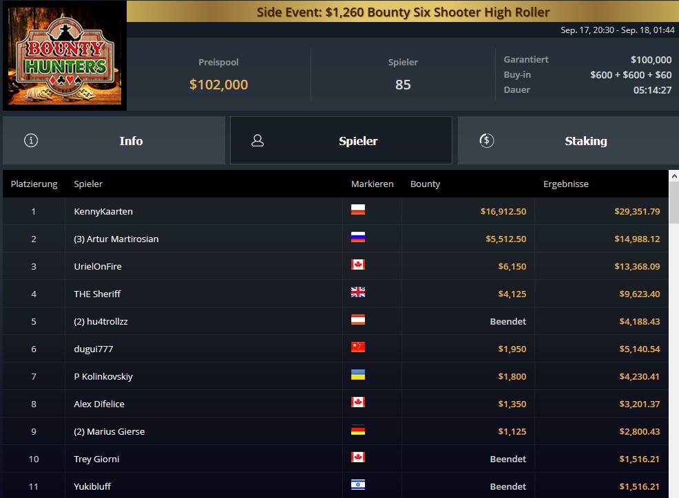 O ‘ΤΗΕ Sheriff’ κατέλαβε εν τέλει την 4η θέση κερδίζοντας συνολικά $9.623.