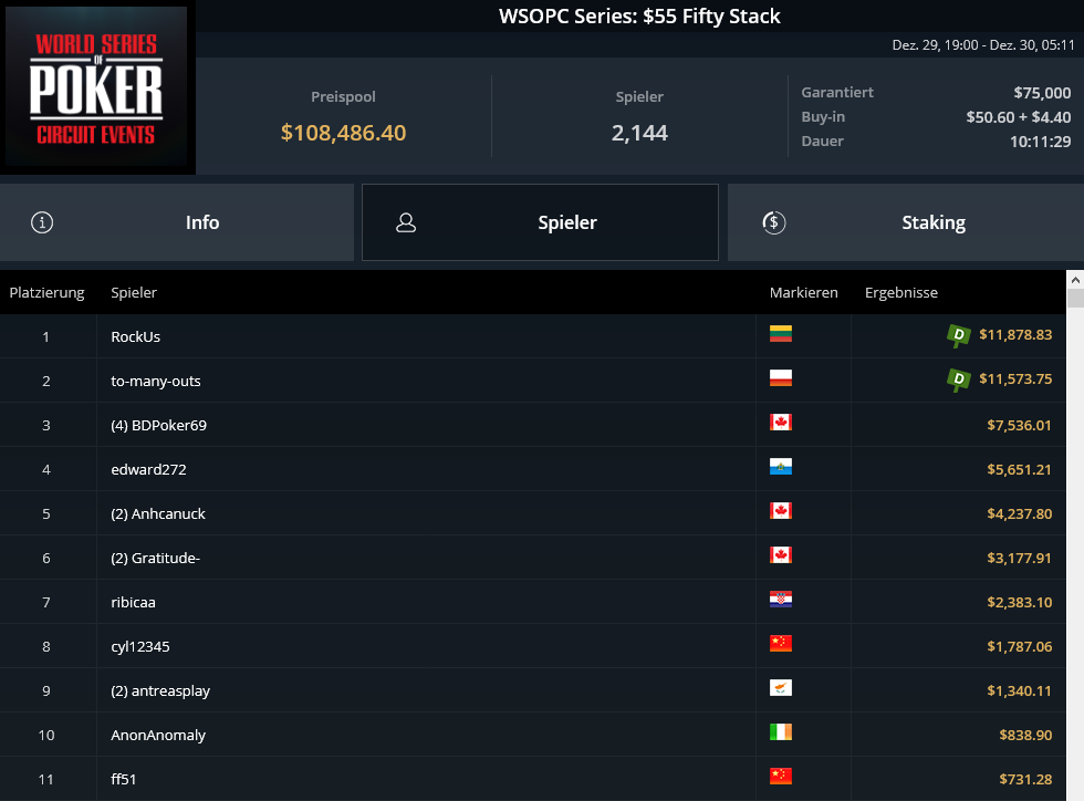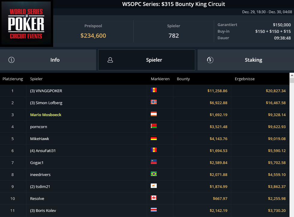Στην 9η θέση του $315 Bounty King αποκλείστηκε εξάλλου ο tsdim21’ για συνολικά $3.862.