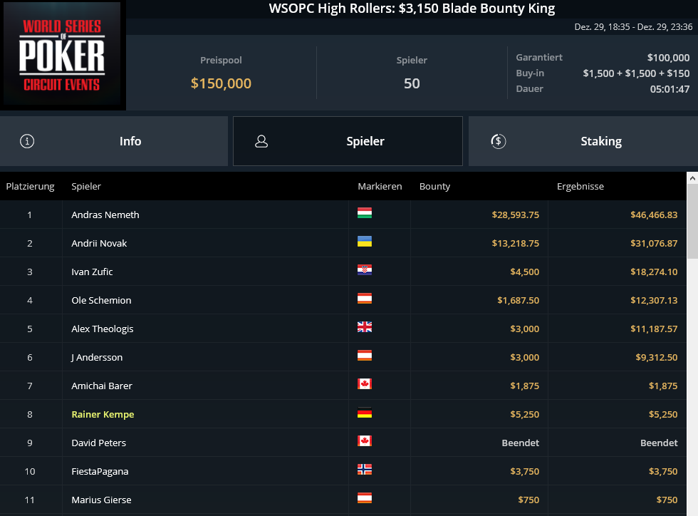 Στην 5η θέση του $3.150 Blade Bounty King τερμάτισε ο Αλέξανδρος Θεολόγης κερδίζοντας συνολικά $11.188!