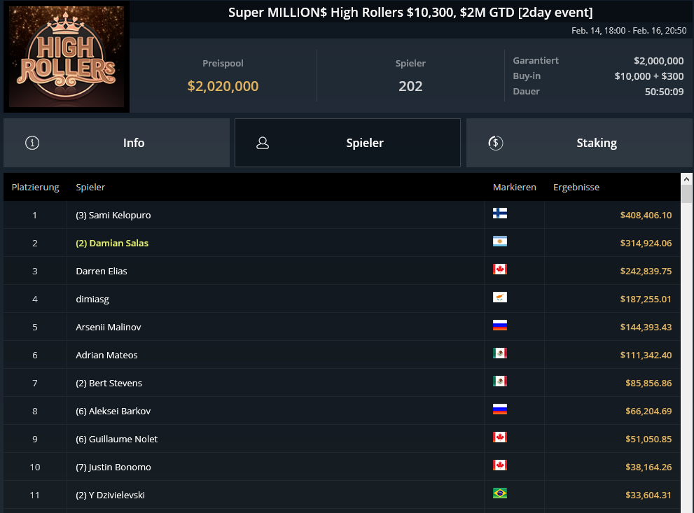 Στην 4η θέση του $10.300 Super Millions τερμάτισε ο ‘dimiasg’ κερδίζοντας $187.255! Δείτε σε επανάληψη το final table εδώ.