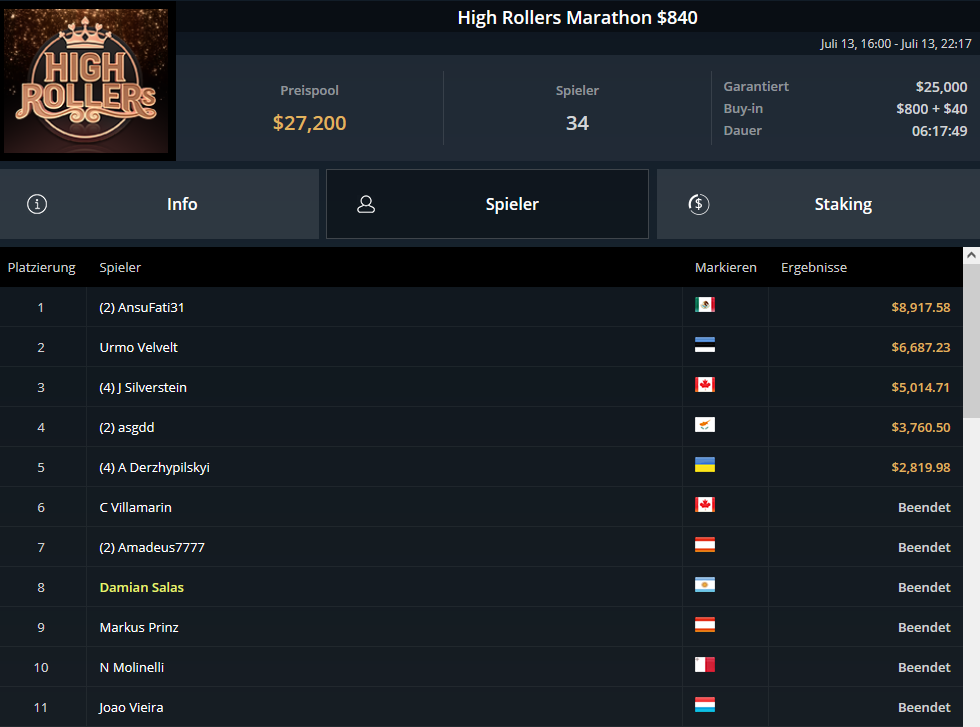 Στην 4η θέση του $840 Marathon αποκλείστηκε ο asgdd κερδίζοντας $3.761.