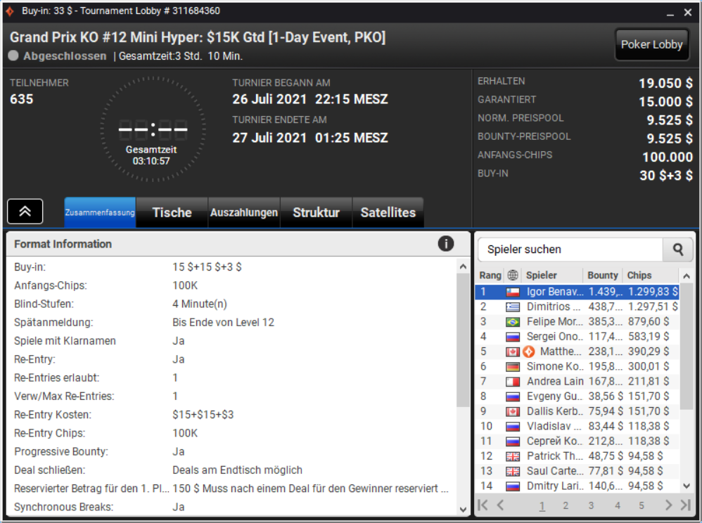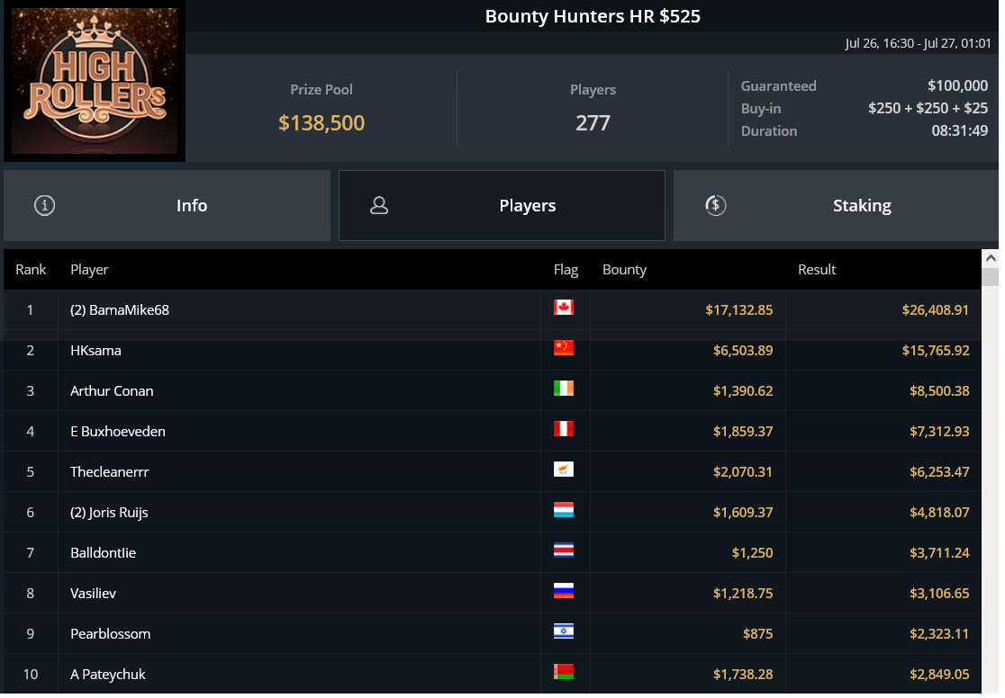 Στο heads-up του $33 NLHE PKO Hyper (PartyPoker) ηττήθηκε τέλος ο Δημήτρης Boσνάκης για $1.298 και επιπλέον $439 από bounties.