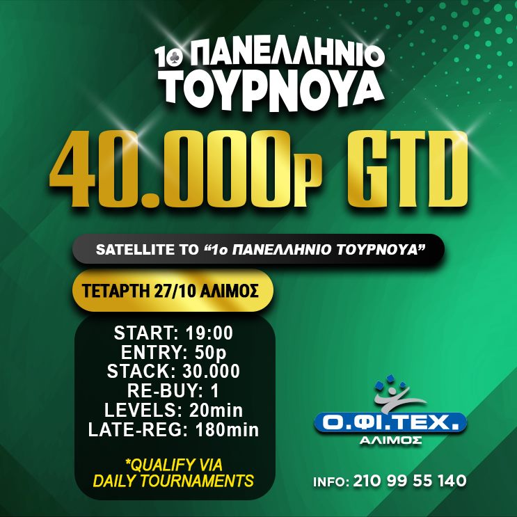 Η θέση 1 κερδίζει Satellite Ticket 50p για το 1ο Πανελλήνιο τουρνουά!