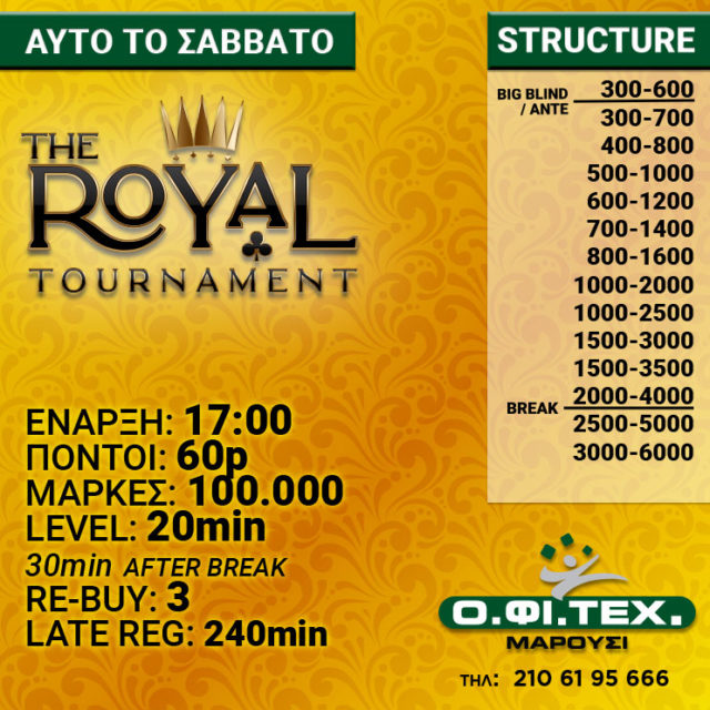 Blind levels: 20 λεπτά / 30 μετά το διάλειμμα