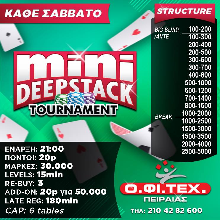 Blind levels: 20 λεπτά / 30 μετά το διάλειμμα