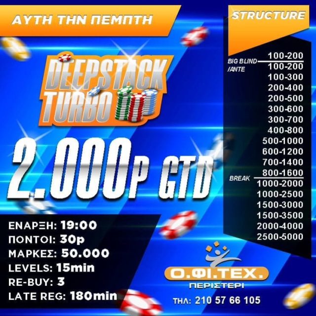 Στις 19:00 το Deepstack Turbo (2.000p gtd)
