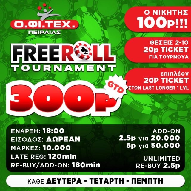 και το freeroll (300p gtd) στον Πειραιά