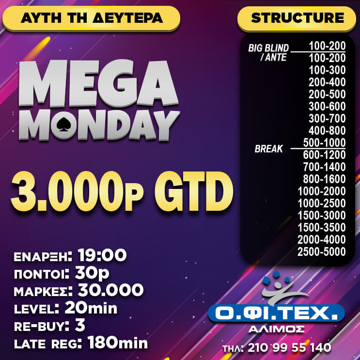 το Mega Monday (3.000p gtd) στον Άλιμο