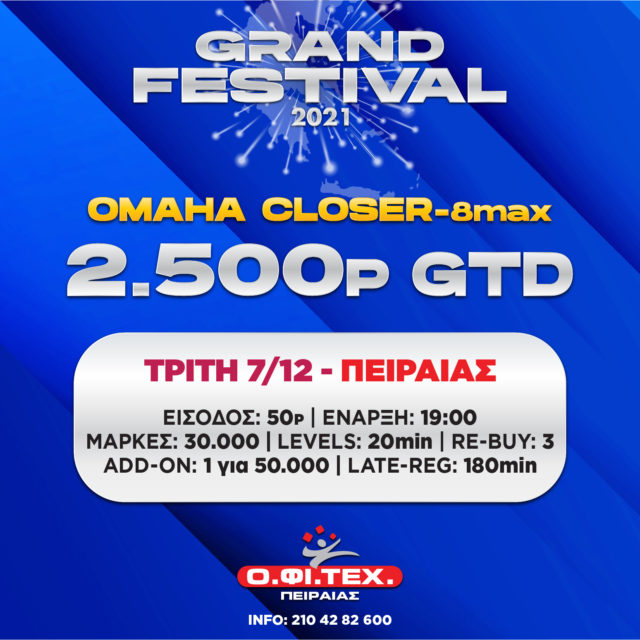 Το τελευταίο event του Grand Festival είναι αφιερωμένο στους φίλους της παραλλαγής Omaha και πρόκειται να μοιράσει τουλάχιστον 2.500p στον Πειραιά!