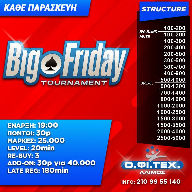 Η Παρασκευή έχει ταυτιστεί με το Big Friday του Αλίμου, το κορυφαίο τουρνουά της εβδομάδας, που θα λάβει χώρα όπως πάντα στις 19:00 δίνοντας μάλιστα και τρία extra tickets!