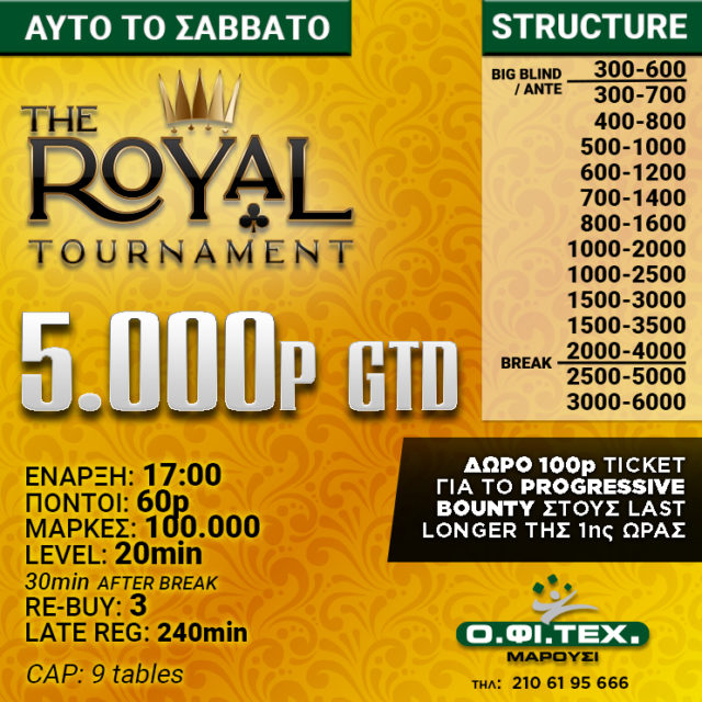 Συναρπαστική βραδιά αναμένεται και σήμερα στις αίθουσες του Ο.ΦΙΤ.ΕΧ. παραμονές της Christmas Series, με το Royal μόνο να μοιράζει τουλάχιστον 5.000p!