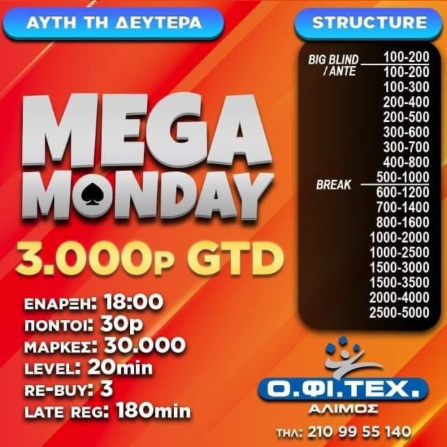 το Mega Monday (3.000p gtd) στον Άλιμο