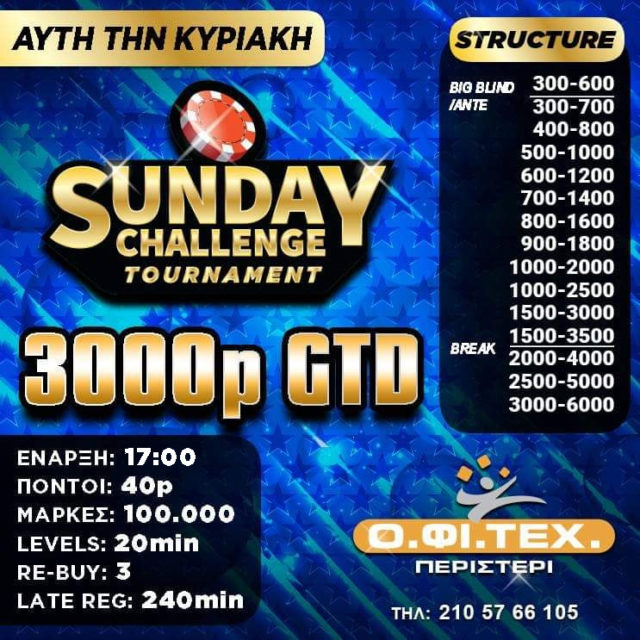 Στις 17:00 το Sunday Challenge (3.000p gtd)