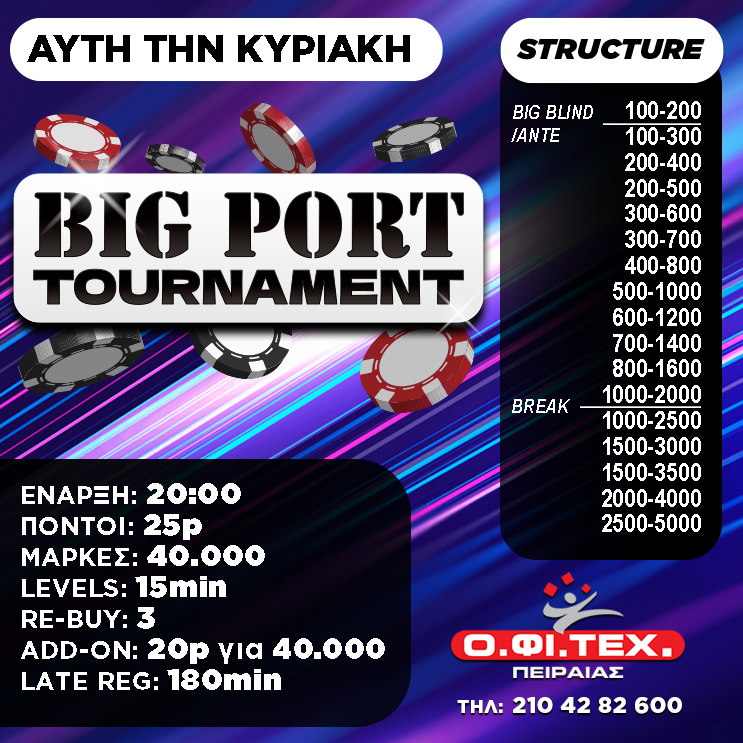 Καθυστερημένες εγγραφές και δικαίωμα για απεριόριστα rebuys (10p) τα πρώτα 180 λεπτά