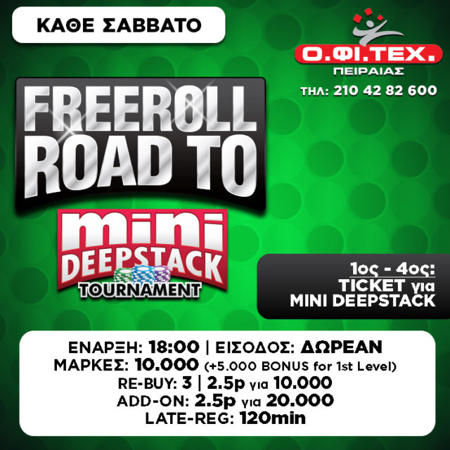 Στις 18:00 το freeroll (200p gtd) Road to Freeroll Championship Be a Pro