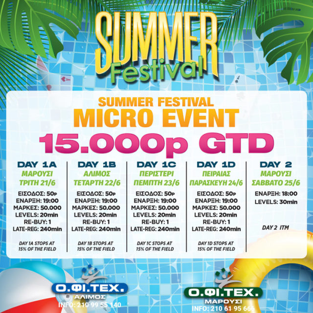 Το Summer Festival συνεχίζεται σήμερα με την έναρξη του Micro event (15.000p gtd) από την αίθουσα του Αμαρουσίου.