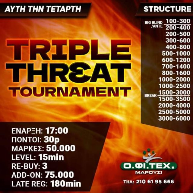 Ένα format που σπάνια κάνει την εμφάνιση του στις ελληνικές αίθουσες είναι προγραμματισμένο απόψε με το Tag Team να ξεκινάει στις 19:00 στον Άλιμο, ενώ εκτάκτως για σήμερα στην αίθουσα του Αμαρουσίου θα ‘τρέξει’ το Triple Threat.