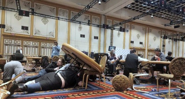 Κάποιοι ισχυρίστηκαν ότι αυτό συνέβη σε γειτονικά καζίνο από αυτό που διεξάγεται το WSOP και απλά ο πανικός… μεταφέρθηκε με τα τραπέζια, τις καρέκλες και τις μάρκες να πετάγονται σε κάθε μεριά.