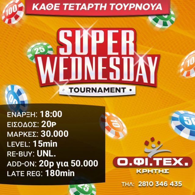 Με δύο freerolls, Monsterstack, Gold & Rush και Super Wednesday θα κυλήσει η Τετάρτη στις αίθουσες Ο.ΦΙ.ΕΧ. Αθηνών, Πειραιά και Κρήτης!