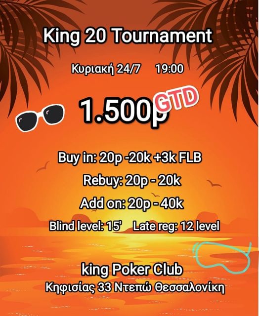 King poker club: Μίνι τουρνουά στις 19:00 με 1.500p gtd!