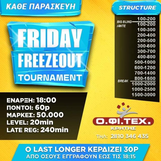To καθιερωμένο πρόγραμμα της Παρασκευής σας περιμένει και σήμερα με το Friday Freezeout να κάνει πρεμιέρα στην Κρήτη έχοντας και last longer bet.