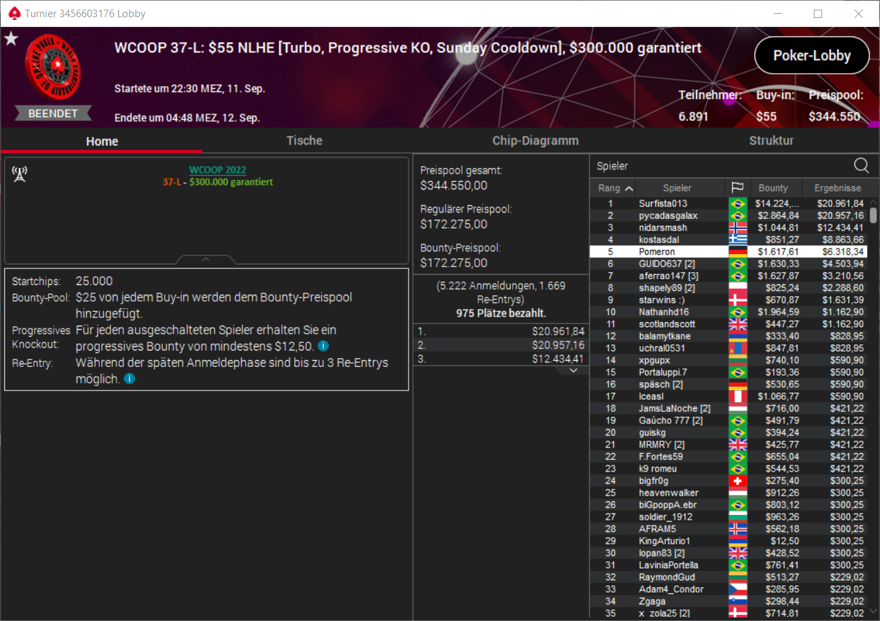Στην 4η θέση του WCOOP #37-L ($55 NLHE PKO) αποκλείστηκε ο “kostasdal” για $8.864 και ακόμη $851 από bounties.